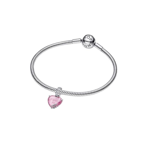 Sag es an diesem Muttertag mit unserem gravierten Herz Charm-Anhänger. Ein herzförmiger rosafarbener Stein ist in Sterling-Silber gefasst und in die Fassung ist das Wort „MOM“ eingraviert. Das Herz selbst trägt die Botschaft „I LOVE YOU“.