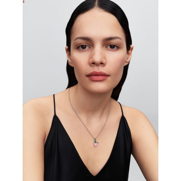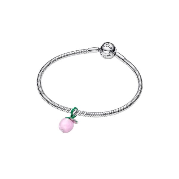 Pflücke jeden Tag Äpfel mit unserem rosafarbenen Murano-Glas-Charm. Es ist aus Sterling-Silber mit grünen und rosafarbenen Emaille-Details gefertigt und ein süßes Symbol für die Weisheit und Schönheit der Natur.