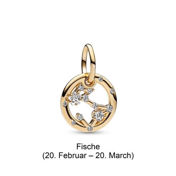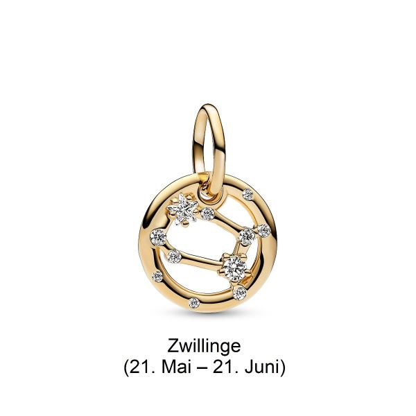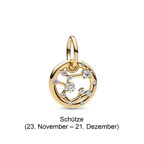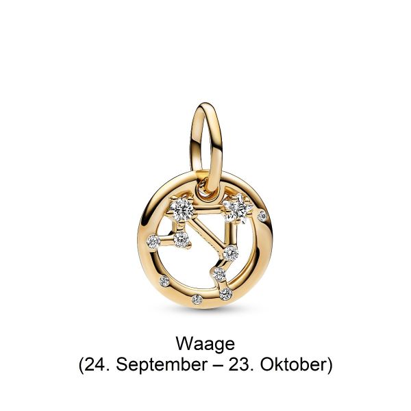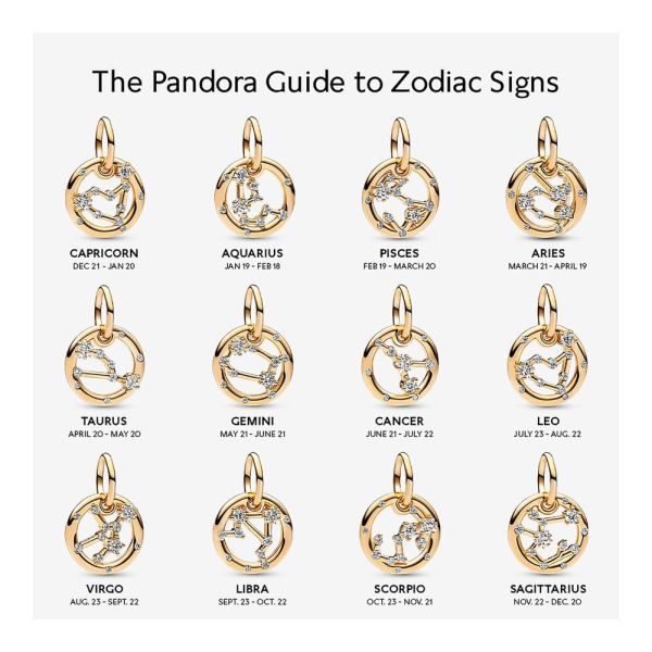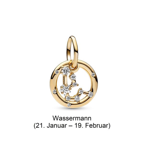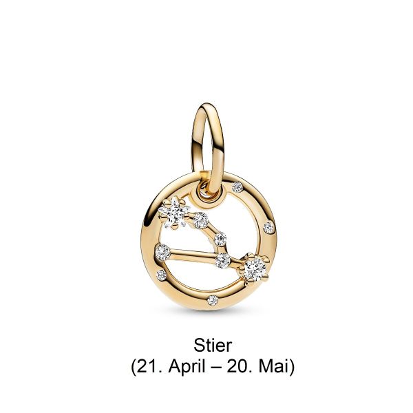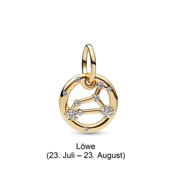 Lass deinen Look von den Sternen leiten mit dem Sternzeichen Charm-Anhänger. Dieser Pandora Moments Charm-Anhänger ist in vergoldeten Metalllegierung gefertigt, hat einen kreisförmigen Außenrahmen und klare, glitzernde Cubic Zirkonia sowie die Form des Sternzeichens. Auf der Rückseite des Rahmens ist lateinischer Name des Sternzeichens eingraviert. Trage den Charm als Zeichen der Stärke deines eigenen Sternzeichens oder schenke ihn einem Menschen in deinem Leben als Zeichen der Wertschätzung.