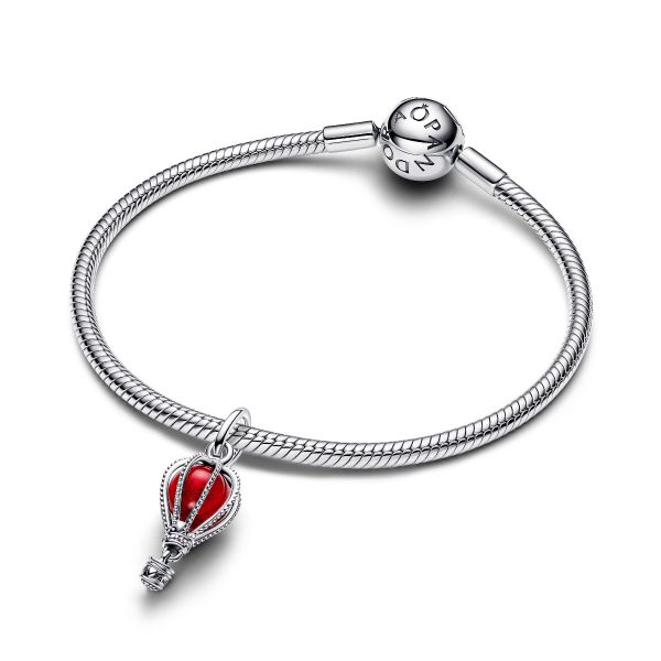 Erreiche neue Höhen mit dem Heißluftballon Murano-Glas Charm-Anhänger aus Sterling-Silber. Ein roter Murano-Glas-Ballon ist in mikroperlenbesetzte Paneele eingefasst, während unter dem Ballon eine kleine Gondel darauf wartet, dich an dein Ziel zu bringen. Trage es als tägliche Inspiration oder schenke es einer Freundin, die bereit für ein neues Abenteuer ist.