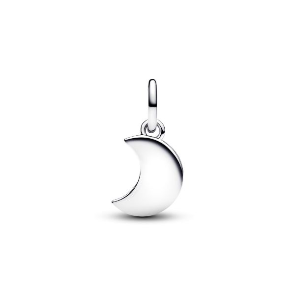 Verschenke den Mond. Dieser doppelte Charm-Anhänger aus Sterling-Silber zeigt eine Mondsichel aus irisierendem Mondstein-Glas und eine andere mit einer eingravierten Botschaft. Eine strahlende Erinnerung an den unendlichen Glanz der Liebe.