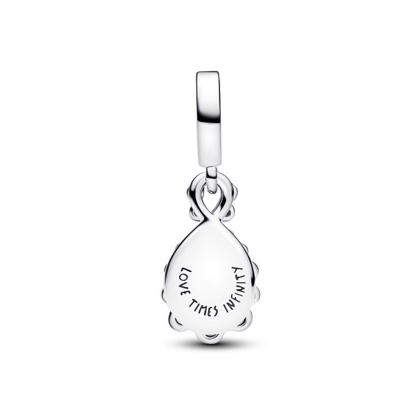 Dieser doppelte Charm-Anhänger aus Sterling-Silber funkelt mit klaren Cubic Zirkonia auf dem einen Charm und im Labor gezüchtetem Opalharz auf dem anderen. Trage ihn mit der Gravur „LOVE TIMES INFINITY“ als Erinnerung an ewige Verbindungen.