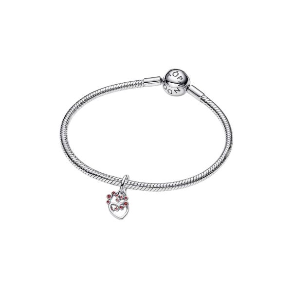 Pandora Charm-Anhänger Verbundene Herzen Rote Steine Silber 794435C01