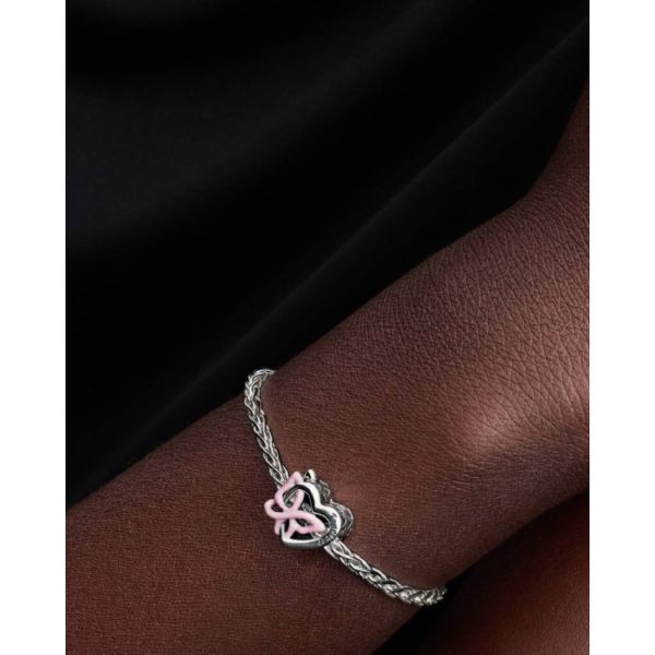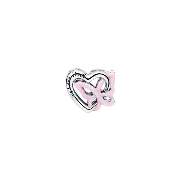 Hülle alles in Liebe. Unser offen gearbeitetes Charm aus Sterling-Silber hat ein Herz, das mit einem Schmetterling aus rosafarbener Emaille verflochten ist. Mit den Gravuren „Together“ und „we have it all“ ist es ein bedeutungsvolles Geschenk.