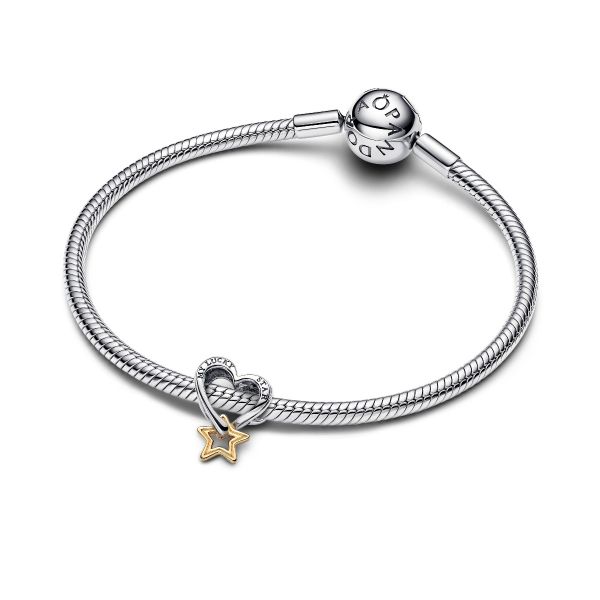 Unser Lucky Star & Herz Charm aus verschiedenen Metallen vereint Liebe und Glück. Ein vergoldeter Stern schwingt an einem offen gearbeiteten Herz-Charm aus Sterling-Silber mit der Gravur „MY LUCKY STAR.“ Trage es als Erinnerung daran, dass du überall dein eigenes Glück schaffen kannst, oder schenke es jemandem in deinem Leben, der etwas mehr Glück gebrauchen kann.