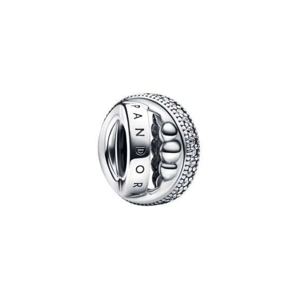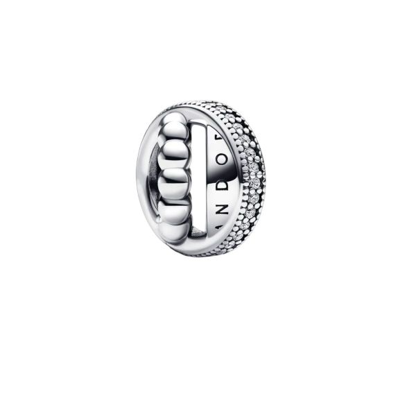 Eine edle Ergänzung für deine Schmuckschatulle. Das Pandora Signature Logo Pavé & Perlen Charm ist aus Sterling-Silber gefertigt und hat zwei kreisförmige Bänder, die von einem diagonalen Band umgeben sind und eine einzigartige geometrische Form erzeugt. Eine Pavé-Reihe verleiht ihm Glanz, während Mikroperlen ihm Struktur und Dimension verleihen. Trage dieses Charm an deinem Armband und erzähle deine Geschichte mit dem Pandora Signature Style.