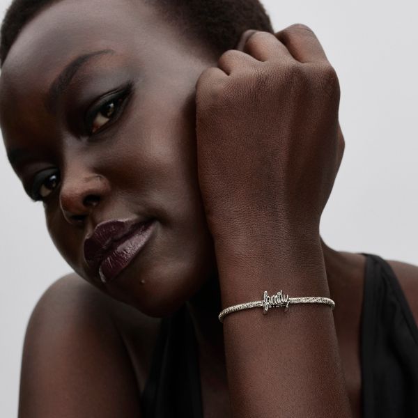 Eine strahlende Erinnerung an das, was am wichtigsten ist. Dieses Charm aus Sterling-Silber trägt den handgeschriebenen Schriftzug „family“ mit einem Punkt aus Cubic Zirkonia über dem „i“. Das fachmännisch gefertigte Schmuckstück ist eine zeitlose Hommage an das Herz jeder Geschichte.