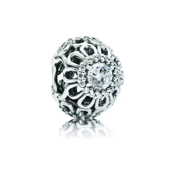 Pandora Chrm aus 925 Sterling-Silber - Funkelnde Blume mit Cubic Zirkonia.