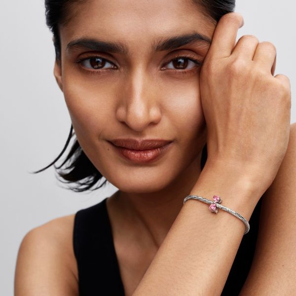 Pandora Charm Schleife Zirkonia Rosafarben Sterling-Silber 794253C01