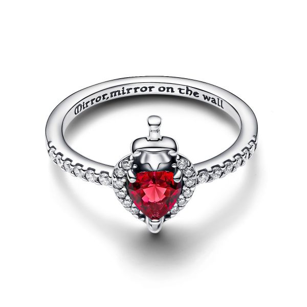 Spieglein, Spieglein an der Wand, welches ist der schönste Ring im Land? Dieser Ring ist eine Hommage an die böse Königin aus Disneys Schneewittchen und trägt eine Herzform, die von einem Schwert durchstoßen wird. Der Ring ist mit einem herzförmigen fuchsiafarbenen künstlichen Kristall besetzt und erinnert an die Schmuckschatulle, die der bösen Königin gehörte. Setze mit diesem symbolischen Schmuckstück aus Sterling-Silber ein Statement.