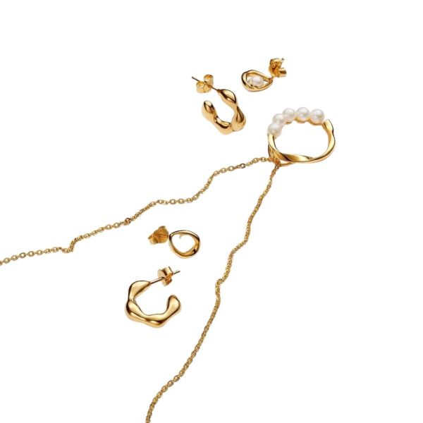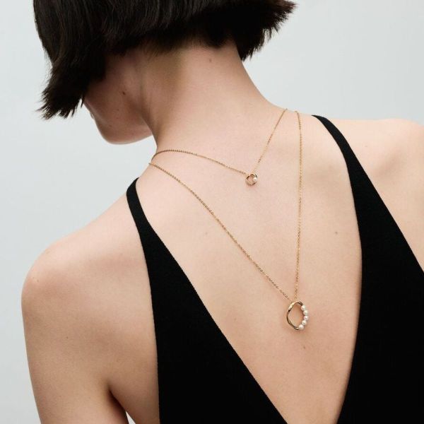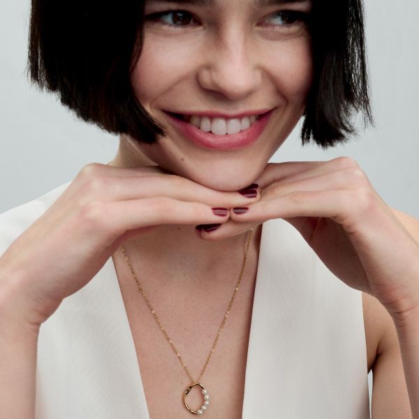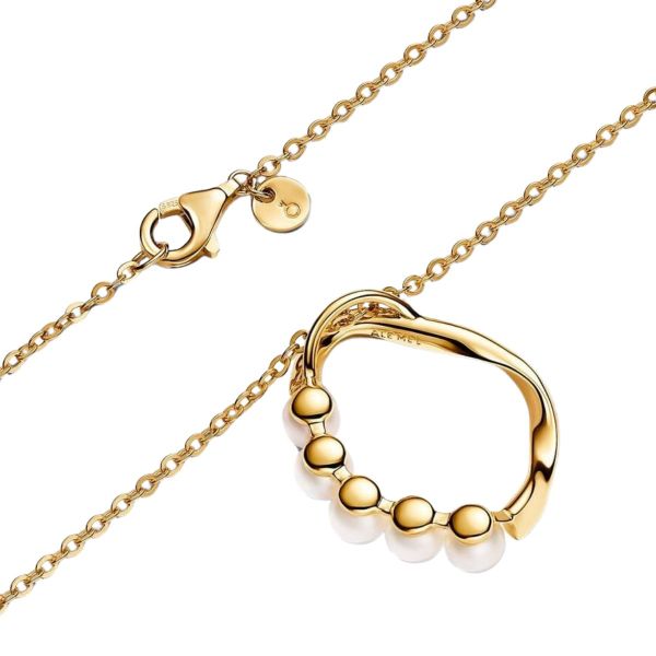 Ein Klassiker mit einer modernen Note: unsere Organisch Geformter Kreis & Behandelte Süßwasserzuchtperlen Anhänger-Halskette. Diese Halskette hat einen leicht eingedrehten, organisch oval geformten, vergoldeten Anhänger mit einer Reihe von fünf behandelten Süßwasserzuchtperlen. Jede behandelte Süßwasserzuchtperle ist einzigartig und kann in Größe und Farbe variieren. Bei diesem Material kann es zu normalem Verschleiß kommen. Unsere Süßwasserzuchtperlen werden mit Bleichmitteln und Glanzverstärkern behandelt.