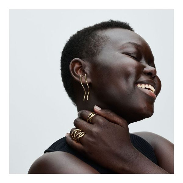 Verleihe deinem Look Dimension mit dem Organisch Geformten Unendlichkeitsring. Der vergoldete Ring teilt sich in zwei überlappende Bänder, die auf der Rückseite miteinander verbunden sind. Beide Bänder sind leicht gewellt und unterschiedlich breit gestaltet, für einen wellenartigen, organischen Look. Dieser Ring verkörpert die Schönheit organischer Formen in der Natur und verleiht deinem Look eine zusätzliche Dimension. Kombiniere ihn mit warmen Styles für monochromen Minimalismus oder baue deinen nächsten maximalistischen Look auf ihm auf.