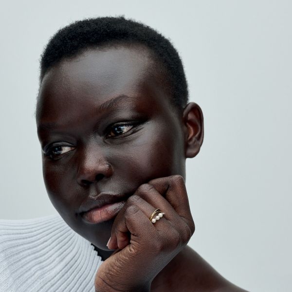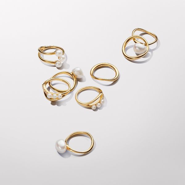 Der Behandelte Süßwasserzuchtperle & Organisch Geformte Doppelbandring verleiht einem klassischen Design eine moderne Note. Der vergoldete Ring erzeugt die Illusion von zwei Bändern, die sich auf der Rückseite des Fingers verbinden. Ein Band ist poliert, das andere ist mit drei weiß behandelten Süßwasserzuchtperlen auf der einen Seite und funkelndem Pavé auf der anderen Seite verziert. Jede behandelte Süßwasserzuchtperle ist einzigartig und kann in Größe und Farbe variieren. Bei diesem Material kann es zu normalem Verschleiß kommen. Unsere Süßwasserzuchtperlen werden mit Bleichmitteln und Glanzverstärkern behandelt.