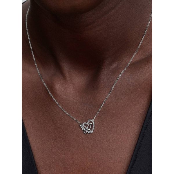 Flieg hin zur Liebe. Unsere offen gearbeitete Halskette hat ein mit einem Schmetterling verschlungenes Herz aus Sterling-Silber und ist mit funkelnden Steinen besetzt. Trage sie als Erinnerung daran, dass Liebe und Natur eng miteinander verbunden sind.
