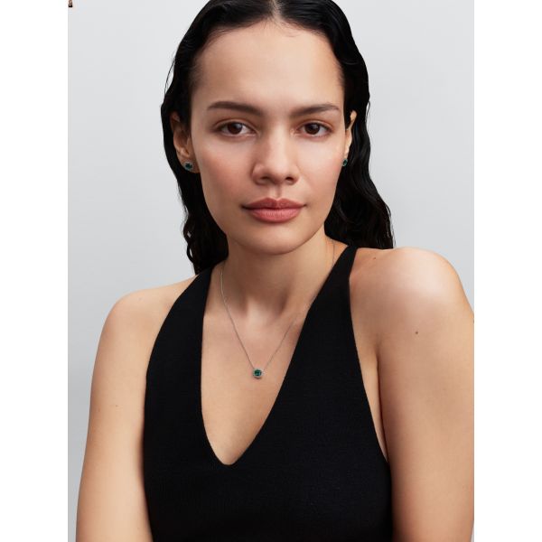 Starte in deine smaragdgrüne Ära. Diese Statement-Halskette aus Sterling-Silber mit einem grünen, von Pavé umgebenen Mittelstein ist von klassischem Schmuck inspiriert.