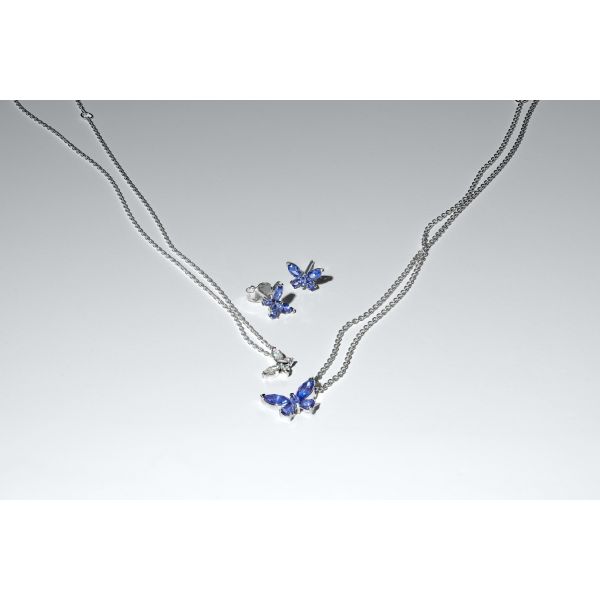 Spreize deine Flügel und verwandle deinen Look mit dieser Halskette aus Sterling-Silber. Der Schmetterling ist mit birnenförmigen blauen künstlichen Kristallen im Marquise-Schliff besetzt und hängt elegant an seiner Kette.