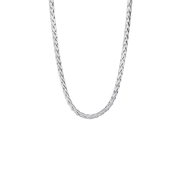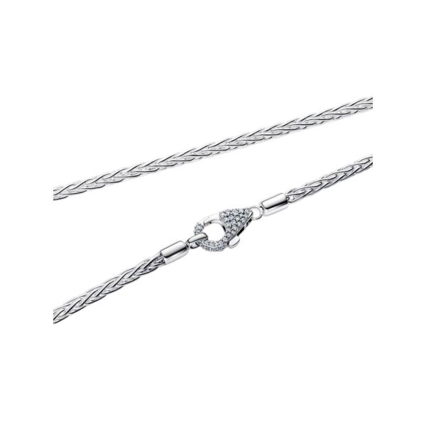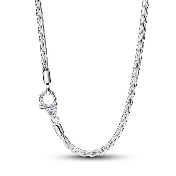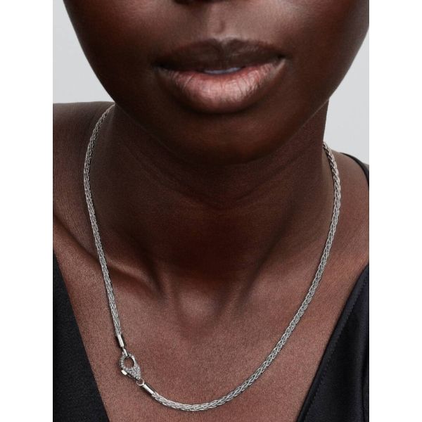 Elegant und strahlend. Unsere Fuchsschwanz-Halskette aus Sterling-Silber glänzt mit Cubic Zirkonia in Körnerfassung und einem Pavé-Verschluss und interpretiert die legendäre Schlangen-Gliederkette mit glattem, tauähnlichem Glanz neu.