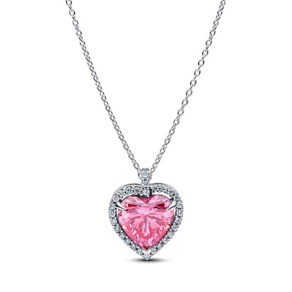 Lehne dich in die Liebe zurück. Diese Halskette aus Sterling-Silber hat einen herzförmigen rosafarbenen Cubic Zirkonia, der von einem Strahlenkranz aus klaren Steinen umrahmt ist. Der Anhänger bewegt sich frei entlang der Kette und fängt mit jedem Schritt das Licht ein.