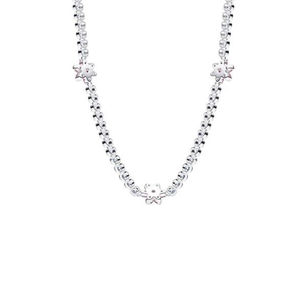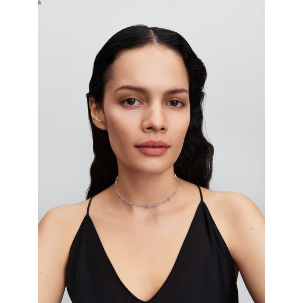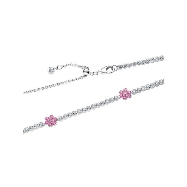 Blühendes Styling. Setze mit unserer Tennishalskette aus Sterling-Silber mit fünf funkelnden Cubic Zirkonia-Blüten an der Kette rosafarbene und florale Akzente. Eine farbenfrohe Hommage an die Schönheit der Natur.