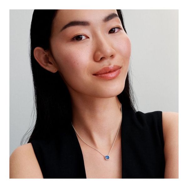 Bring mit dieser Statement-Halskette aus Sterling-Silber tiefblaue Akzente in deinen Look. Das Schmuckstück ist mit einem blauen Kristall besetzt, der von einem quadratischen Strahlenkranz aus Cubic Zirkonia umgeben ist – und vereint mühelos modernes und klassisches Design. Der Anhänger ist an einer Gliederkette befestigt, die auf bis zu drei verschiedene Längen verstellbar und am Verschluss mit einem zusätzlichen Stein im Brillantschliff in Krappenfassung versehen ist.