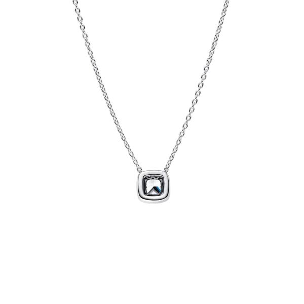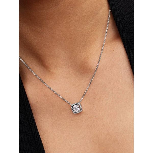 Eleganz kommt nie aus der Mode. Diese Halskette aus Sterling-Silber hat einen quadratischen Mittelstein, der von einem funkelnden Strahlenkranz umgeben ist, und wird viele Jahre lang ein Must-have in deinem Stacking sein.