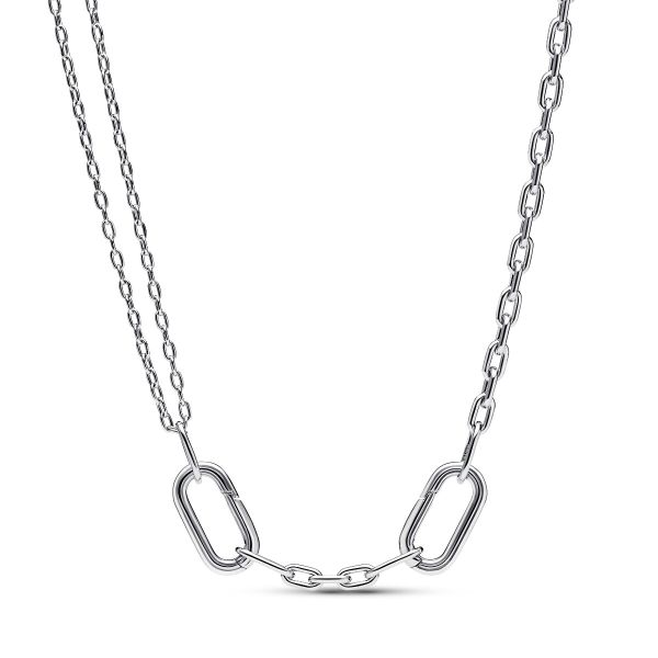 Unsere Pandora ME Doppel-Link Gliederhalskette aus Sterling-Silber bietet endlose Styling-Möglichkeiten mit zwei zu öffnenden Styling-Connectors – mit gerillten Linien, um sie hervorzuheben – fünf Links zwischen jedem Styling-Connector und einem kleinen Karabinerverschluss. Die Hälfte der Halskettenglieder ist bis zu einem doppelten Kettendetail verbunden, was der Kette eine individuelle Note verleiht. Du kannst die ursprüngliche Länge beibehalten, deine Gliederkette verlängern oder in einen Choker verwandeln, alles durch beliebiges Hinzufügen und Entfernen von Gliedern. Wenn du deine Gliederkette angepasst hast, kannst du sie mit aussagekräftigen Medaillons und Mini-Dangles auf allen zu öffnenden Styling-Links und Connectors stylen, um deine Geschichte zu erzählen.