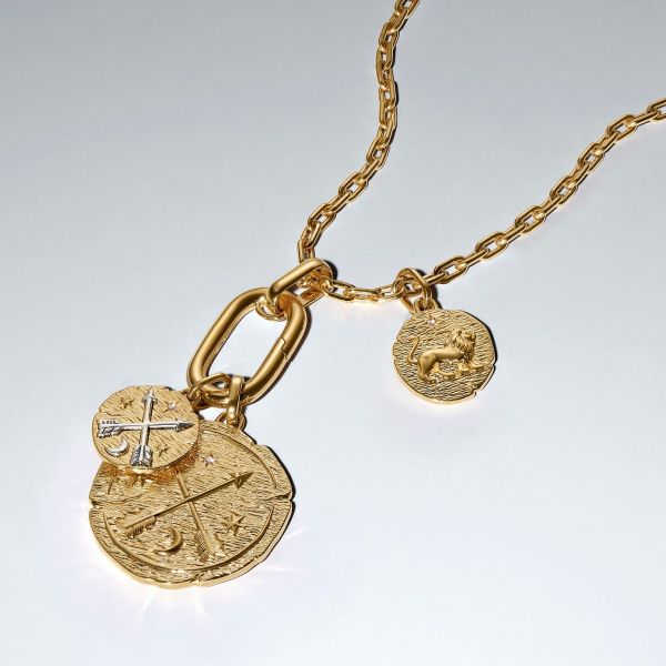 Verleihe deinem Look mit unserer personalisierbaren Glieder-Halskette mit 14 Karat Goldauflage ein Upgrade. Füge bis zu 4 Medaillons und 1 großes Medaillon hinzu, um dein Schmuckstück zu personalisieren.