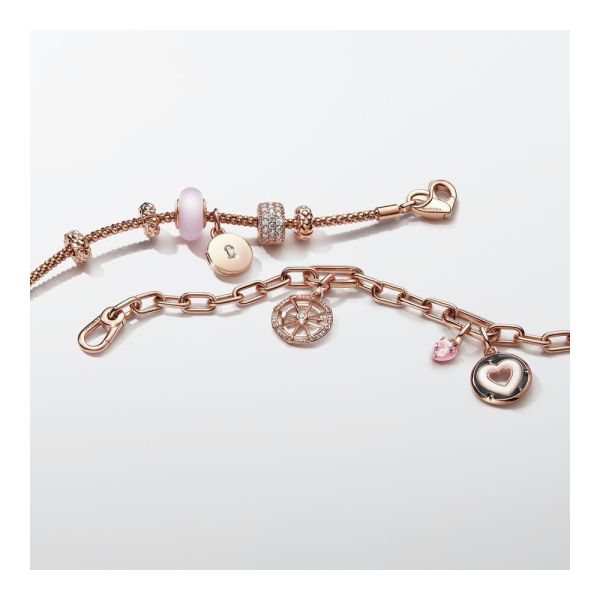 Suche dein Glück mit dem Pandora ME Glücksrad Medaillon-Charm in Rosévergoldung. Dieses 8-zackige Rad-Charm symbolisiert Glück und Karma und hat einen beweglichen Pfeil in der Mitte. Dreh es, sodass es auf dein Schicksal zeigt. Auf den vier Zacken des Rads sind die Buchstaben T, A, R und O eingraviert, die von den Buchstaben auf einigen Versionen der Tarot-Karte Glücksrad inspiriert sind. Es kann in einem Kreis als TAROT gelesen werden, wobei das T wiederholt wird. Dieses Medaillon-Charm kann auf Pandora Moments Charm-Carriern und zu öffnenden Links auf Pandora ME Carriern gestylt werden.