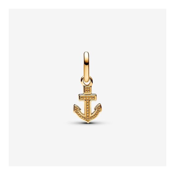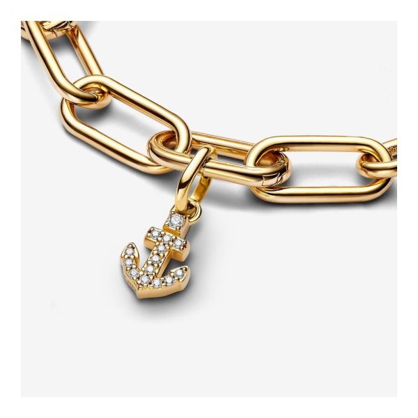 Mit dem Pandora ME Anker Mini-Charm-Anhänger verlierst du auf stylische Weise nie die Bodenhaftung. Eine Seite dieses vergoldeten Anker-Charms ist mit funkelnden Steinen besetzt, die Rückseite ist mit Mikroperlen verziert, die einen interessanten Kontrast bei der Oberflächenstruktur schaffen. Dieses hübsche Anker-Charm erinnert daran, dass man manchmal Stabilität und Erdung findet, wenn man einfach im Moment lebt. Das Charm passt wunderbar zu anderen warmen Styles. Kann nur an aufklappbaren Links gestylt werden.