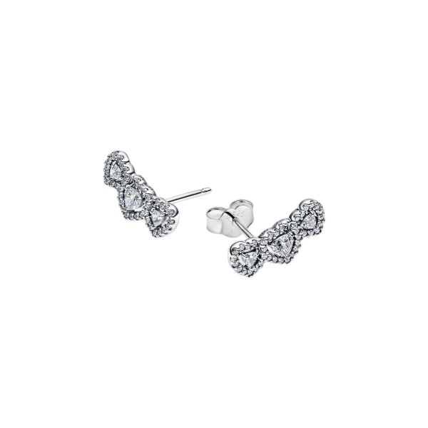 Strahle Liebe aus. Diese Ohrstecker aus Sterling-Silber werden als Paar verkauft und sind mit drei herzförmigen Steinen besetzt, die durch einen Strahlenkranz aus funkelndem Pavé verbunden sind. Ein Geschenk für dich selbst oder einen besonderen Menschen.