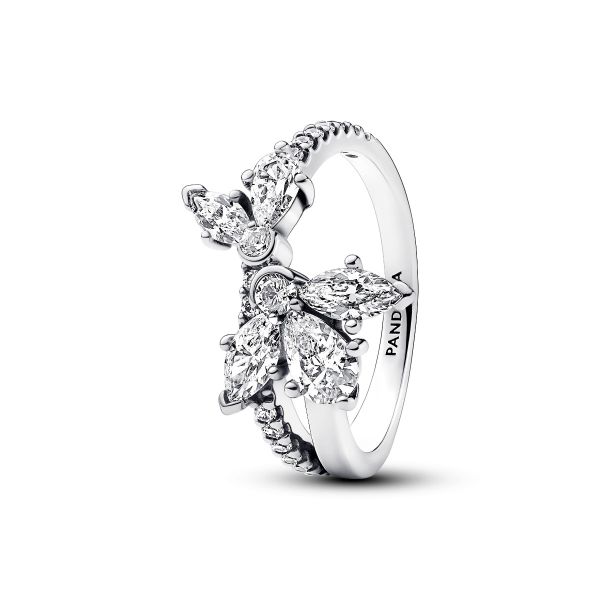 Feiere mit dem Funkelnden Asymmetrischen Herbarium Cluster Ring die Schönheit der Natur. Dieser Ring aus Sterling-Silber spiegelt mit seinem asymmetrischen Band und Blumenmotiv die einzigartige Symmetrie der Natur wider. Drei marquiseförmige Steine und zwei birnenförmige Steine bilden Cluster, die wiederum runde Steine umrahmen. Ein Band ist halb mit Pavé besetzt, das zweite polierte Halbband sorgt für noch mehr Tiefe. Dieser von der Natur inspirierte Ring ist einzigartig, filigran und ein Highlight in jeder Schmucksammlung.