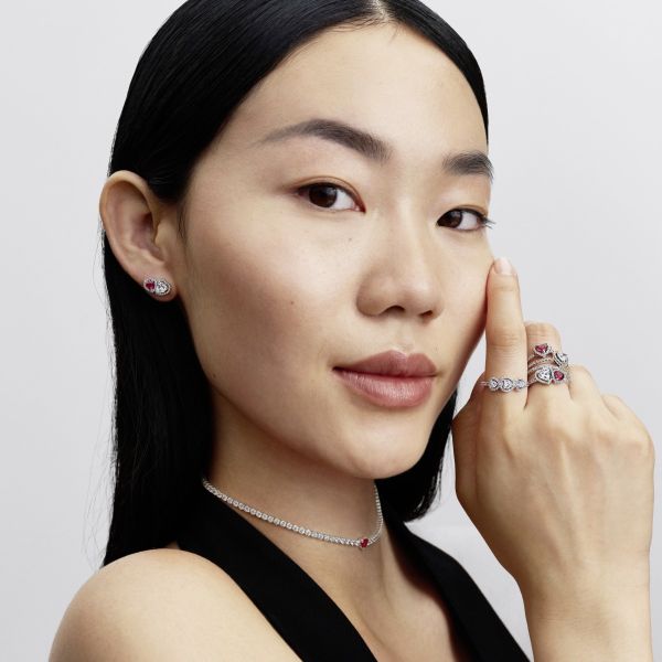 Für Vergangenheit, Gegenwart und Zukunft. Dieser aus Sterling-Silber gefertigte Ring ist mit drei herzförmigen Steinen besetzt, die durch einen Strahlenkranz aus Pavé verbunden sind. Ein funkelndes Symbol der Liebe in all ihren Phasen.