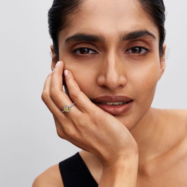 Pandora Ring Funkelndes Erhabenes Gelbes Herz Silber 198421C06