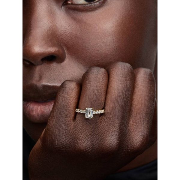 Perfekt geschliffen. Dieser 14 Karat vergoldete Ring hat einen erhabenen klaren Stein mit einem halben Pavé-Band. Das perfekte Schmuckstück für jeden Anlass.