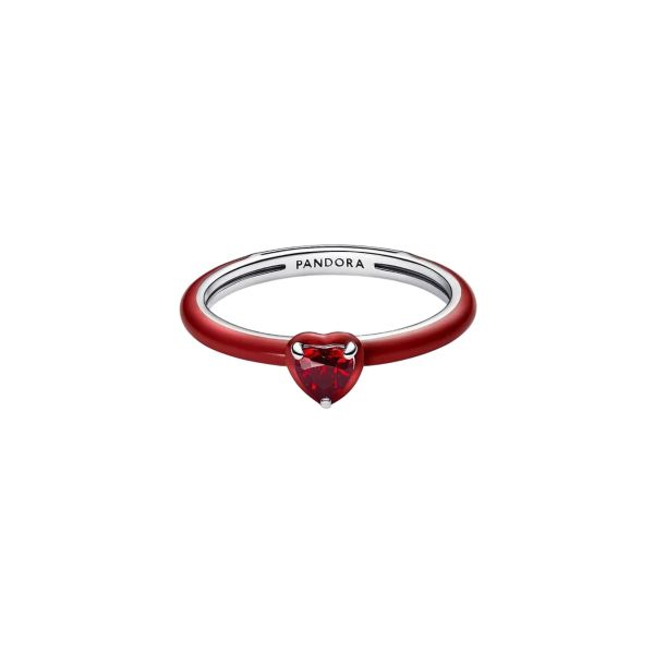 Dieser aus Sterling-Silber gefertigte Ring hat einen roten herzförmigen Stein, der von einem Strahlenkranz und einem Band aus tonaler Emaille akzentuiert wird. Ein Symbol der Liebe zu dir selbst und anderen.