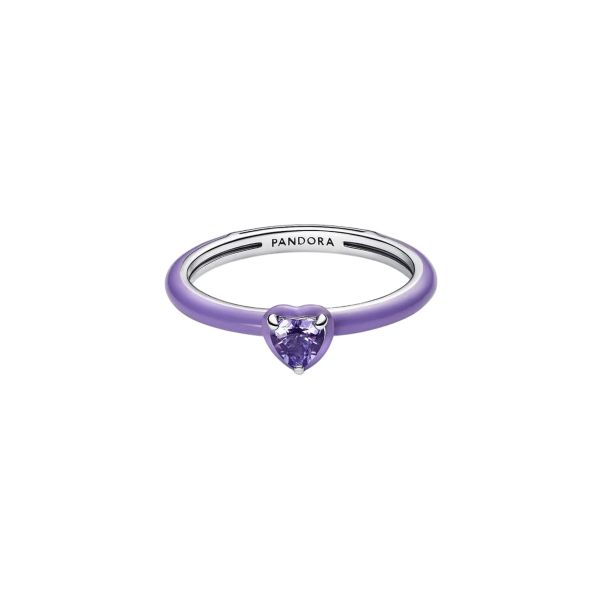 Dieser aus Sterling-Silber gefertigte Ring hat einen violetten herzförmigen Stein, der von einem Strahlenkranz und einem Band aus tonaler Emaille akzentuiert wird. Ein Symbol der Liebe zu dir selbst und anderen.