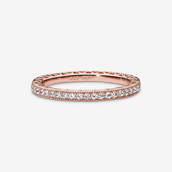 Drücke den wahren Wunsch Deines Herzens mit diesem Funkeln und Herzen Ring aus. Dieses elegante Design in 14 Karat Rosévergoldung ist handveredelt und kombiniert strahlende Cubic Zirkonia mit zarten ausgestanzten Herzen. Präsentiere ihn allein oder kombiniere ihn mit anderen Pandora-Ringen für ein schickes Spiel mit Texturen.