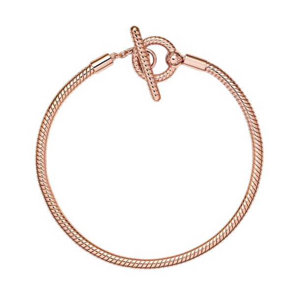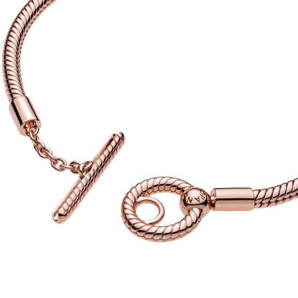 Erweitere Deine Schmucksammlung mit dem Pandora Moments Schlangen-Gliederarmband mit T-Verschluss. Das von Hand veredelte Schmuckstück aus Pandora Rose (14 Karat rosévergoldete Metalllegierung) ist eine moderne Interpretation des beliebten Pandora Moments Schlangen-Gliederarmbands. Führe den T-Verschluss durch den kleineren der beiden Kreise, um das Armband sicher zu verschließen. Das Armband ist an den starren Teilen mit einem Schlangengliedermuster versehen und kann bis zu 15-20 Pandora Moments Charms und Anhänger aufnehmen.