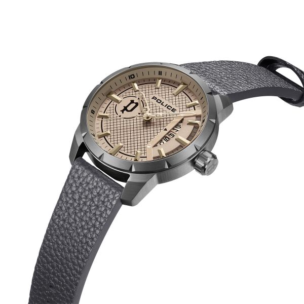 Das moderne, getönte Glasdesign der Neist-Uhr von Police ist ein Eyecatcher. Das strukturierte Gun-Sunray-Zifferblatt mit Datumsanzeige ist umschlossen von einem gebürstetem IP-Gun-Gehäuse und wird von einem bernsteinfarben getönten Glas gekrönt, das die Blicke auf sich zieht. Das genarbte anthrazitfarbene Lederarmband lenkt nicht von diesem verspielten Design ab.