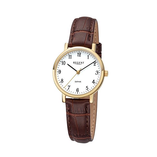 Regent Damen-Uhr Analog Quartz Lederband Braun Goldton F-1428