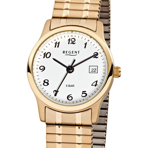 Regent F-886 Damen-Uhr Analog Quarz mit Zug-Armband IP Gold Ø 27 mm