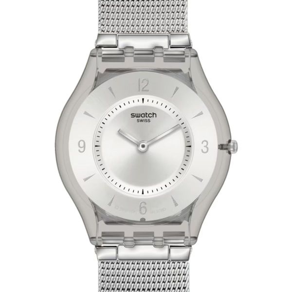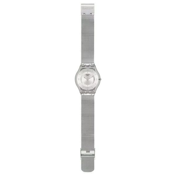 Die ultra-dünne METAL KNIT (SS08K100M) überzeugt mit verstellbarem Milanaise-Armband aus Edelstahl in perfekter Kombination mit dem silbernen Zifferblatt mit Sonnenschliff.