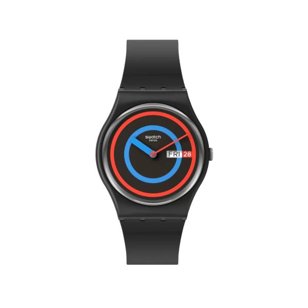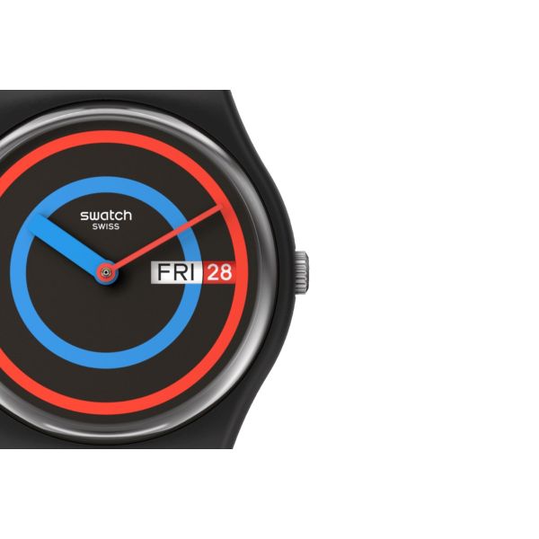 Swatch SO28B706 Armband-Uhr Circling Black Analog Quarz Silikon-Band Ø 34 mm