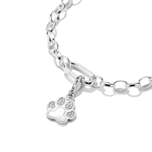 Zeige mit dem glitzernden Pfötchen-Charm aus 925er Sterlingsilber, besetzt mit Zirkonia-Pavé, deine Liebe zu deinem Vierbeiner.