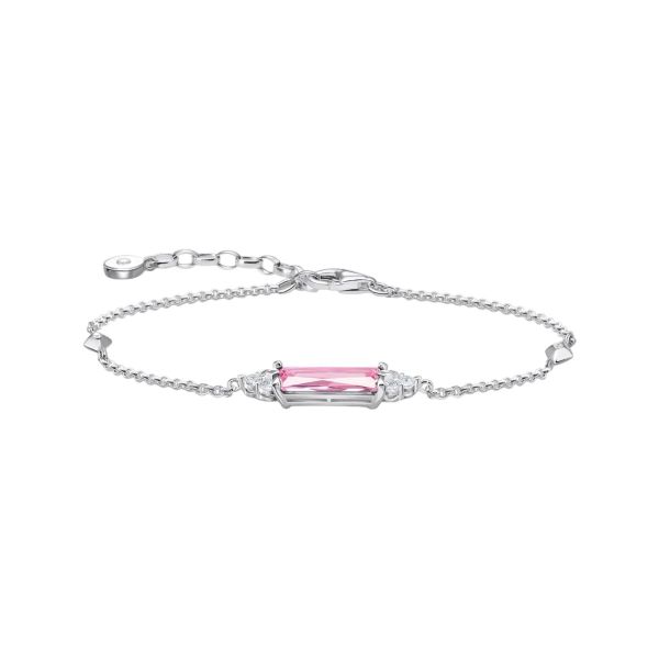 Zeitlose Eleganz: Das Armband ist aus 925er Sterlingsilber in stilvollem Design gestaltet. Highlight ist der pinkfarbene Zirkonia im edlen Oktagonschliff. Seine offene Krappenfassung macht das Farbenspiel des Steins bei Lichteinfall besonders intensiv. Ihn begleiten kleine, handgesetzte, weiße Zirkonia-Steine im Rundschliff. Weitere Zirkonia-Steine sind in zwei filigran gestaltete Elemente gesetzt sowie in das Ende des Verlängerungskettchens. Mit seiner Hilfe lässt sich das Armband von 16 bis 19 cm an das Handgelenk individuell anpassen. Schmuckstücke im gleichen Design aus dem Portfolio von THOMAS SABO sind die ideale Ergänzung.