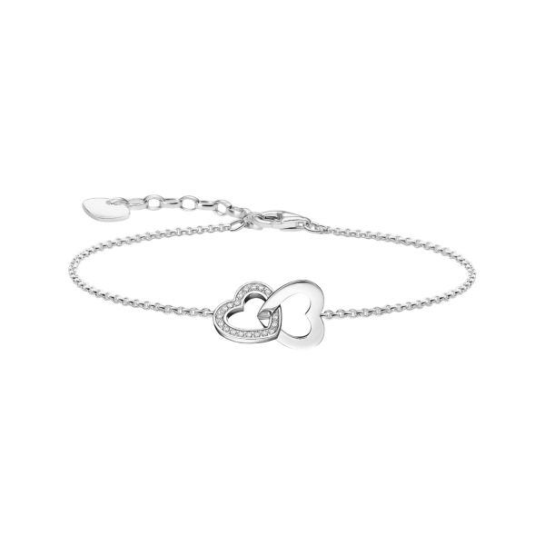 Zeige deinem Lieblingsmenschen, wie groß deine Gefühle sind. Dieses verspielte Armband aus recyceltem Silber symbolisiert das immerwährende Band zwischen Liebenden. Es ist mit zwei ineinander verschlungenen Herzen geschmückt. Davon ist eines hochglanzpoliert, das zweite ist mit weißen Zirkonia-Steinen besetzt. Das Design unterstreicht ihre besondere Bedeutung.