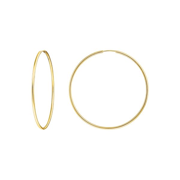 Ob zum Alltagslook oder Partyoutfit – die großen schlichten Creolen sind das Must-have unter den Accessoires. Aus glänzendem, recyceltem Silber mit 18k-Vergoldung gefertigt, sind sie mit einem Durchmesser von 6 cm ein Blickfang. Die goldfarbenen Creolen sind flexibel gestaltet, so dass du sie einfach anlegen und angenehm tragen kannst – tagsüber ebenso wie beim Tanz in die Nacht hinein.