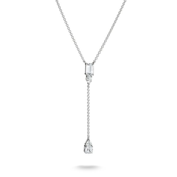 Diese fein gearbeitete Y-Kette aus recyceltem 925 Sterling Silber verbindet zeitlose Eleganz mit modernem Glamour. Die schlanke Y-Form legt sich schmeichelnd um den Hals und setzt ein besonderes Highlight im Dekolleté. Weiße Zirkoniasteine in unterschiedlichen Schliffen – von Oktagon über Tropfen bis Trillantschliff – fangen das Licht bei jeder Bewegung ein und lassen die Kette dezent, aber luxuriös strahlen. Ein Must-have für alle, die elegante Zurückhaltung mit einem Hauch feinem Luxus kombinieren möchten – vom Alltag bis zum Abendlook.