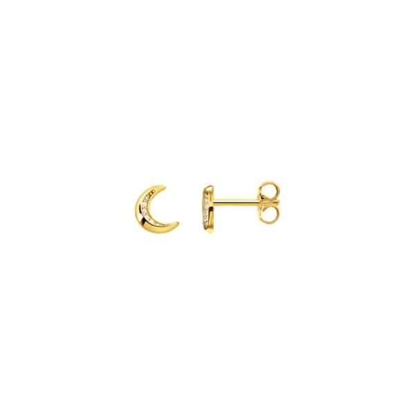 Der zauberhafte, gelbgold-vergoldete Mond-Ohrstecker erfüllt mit seiner hinreißenden Optik alle Anforderungen an ein Schmuckstück im trendigen Cosmos Design. Denn sowohl seine Mondsichel-Form als auch die eingefassten Zirkoniasteine im Inneren verströmen jede Menge kosmisches Flair. In Kombination mit weiteren himmlischen Schmuckstücken aus der Charming Collection von THOMAS SABO lässt sich der Mond-Ohrstecker spielend leicht in unterschiedliche Earparty-Looks integrieren.