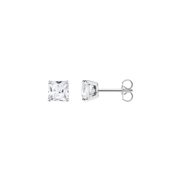 Zeitlose Eleganz: Die kleinen Ohrstecker sind hochwertig aus 925er Sterlingsilber gefertigt und mit je einem weißen Zirkonia-Stein geschmückt. Highlight sind die funkelnden Steine im quadratischen Prinzessschliff, deren Farbenspiel dank der offenen Krappenfassung bei Lichteinfall besonders intensiv ist.